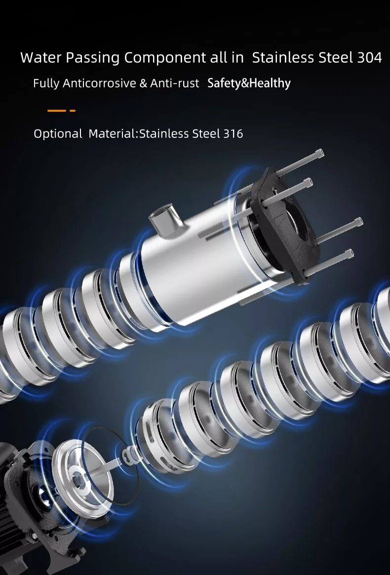 4. শক্তি দক্ষ: এর উন্নত ডিজাইন এবং অত্যাধুনিক প্রযুক্তির সাহায্যে, আমাদের মাল্টিস্টেজ পাম্প শক্তির ব্যবহারকে অপ্টিমাইজ করে, আপনাকে সর্বোচ্চ কর্মক্ষমতা বজায় রেখে অপারেটিং খরচ কমাতে সাহায্য করে।