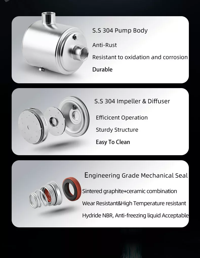 3. বহুমুখী অ্যাপ্লিকেশন: বিল্ডিং, সেচ ব্যবস্থা বা শিল্প প্রক্রিয়াগুলিতে আপনার জলের চাপ বাড়ানোর প্রয়োজন হোক না কেন, এই পাম্পটি সহজে বিস্তৃত চাহিদা মেটাতে যথেষ্ট বহুমুখী।