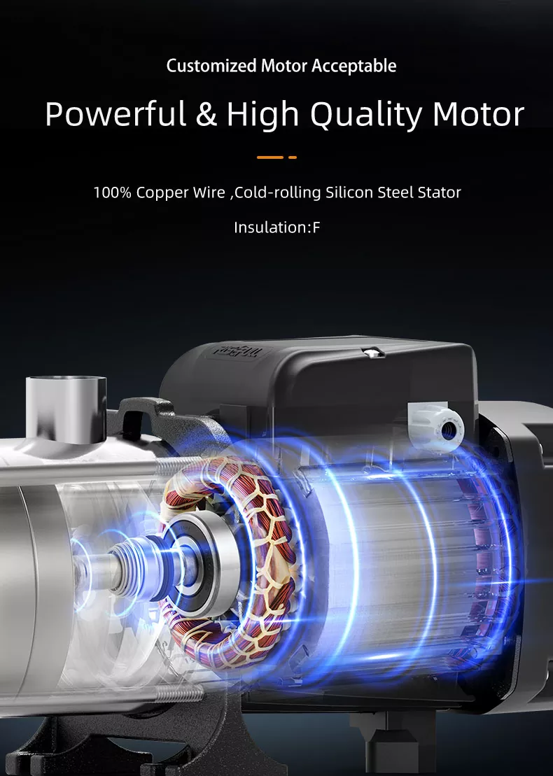 1. মাল্টিস্টেজ কার্যকারিতা: আমাদের পাম্প একাধিক ইম্পেলারকে গর্বিত করে যেগুলি উচ্চ চাপ এবং প্রবাহের হার প্রদানের জন্য নির্বিঘ্নে একসাথে কাজ করে, এটিকে এমন পরিবেশের জন্য উপযুক্ত করে যেখানে সামঞ্জস্যপূর্ণ কর্মক্ষমতা অত্যন্ত গুরুত্বপূর্ণ।